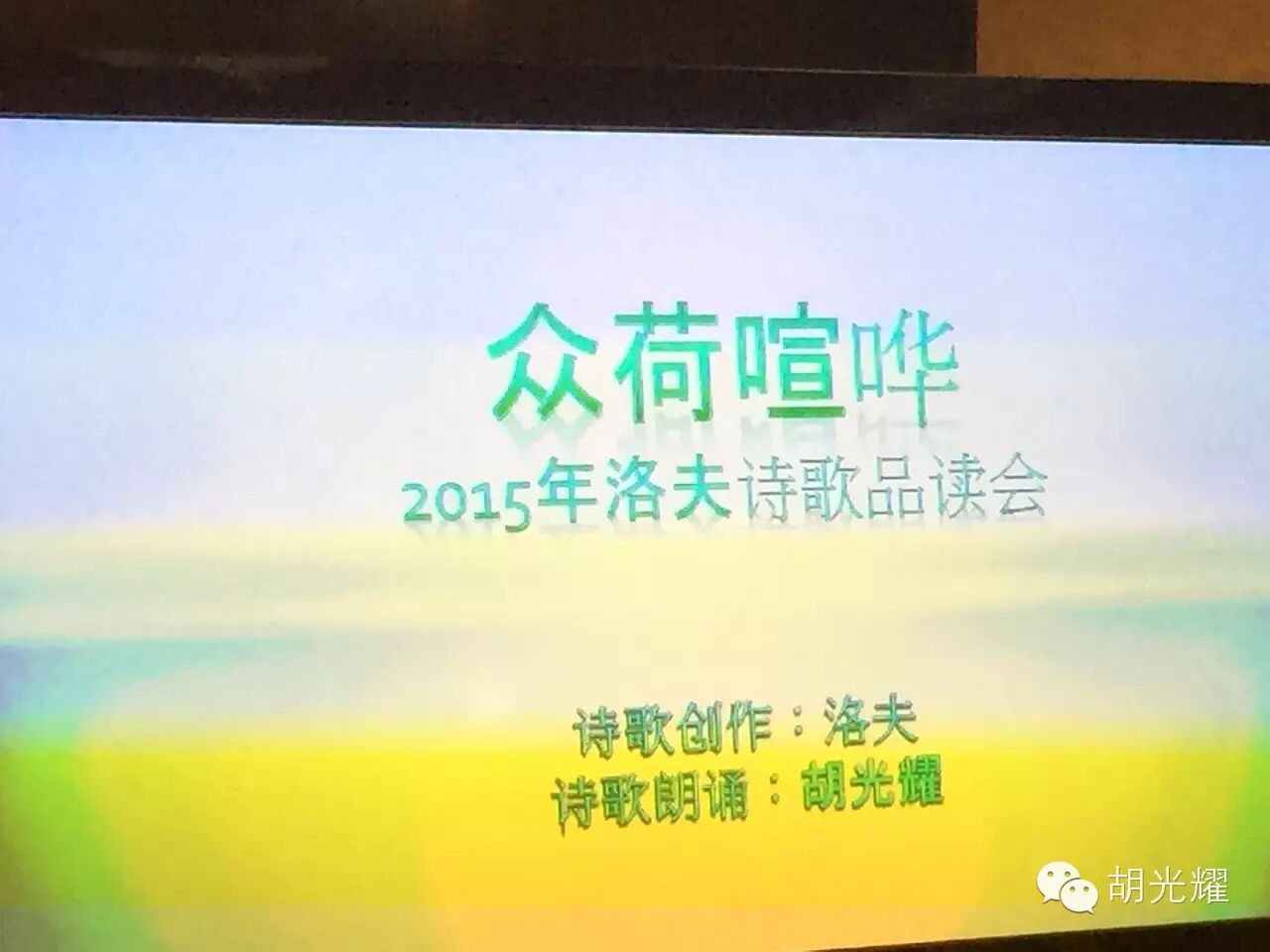 胡光耀先生朗诵的是洛夫年轻时的作品《众荷喧哗》: